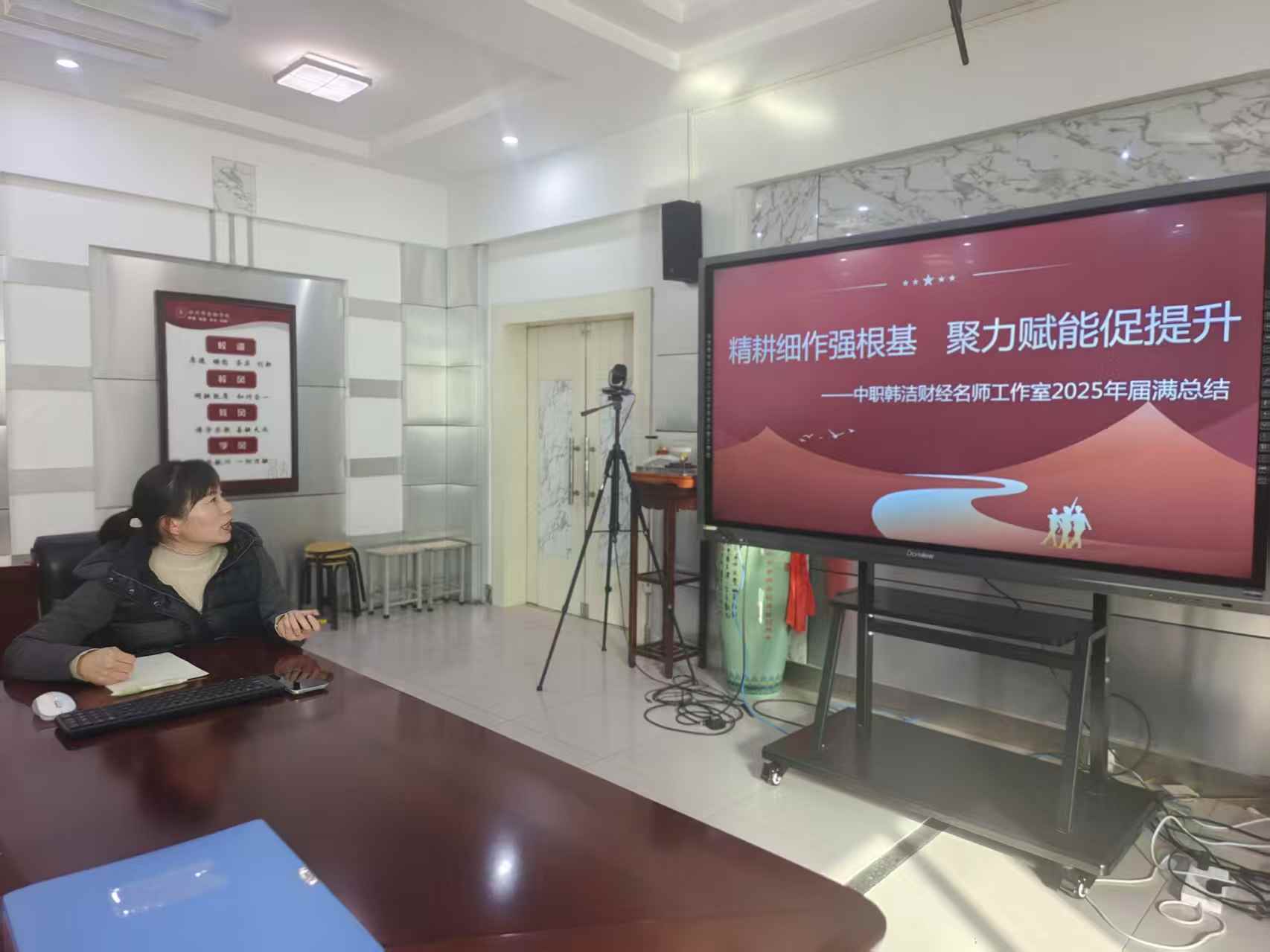 考核过程中,中职韩洁财经名师工作室成员首先就三年来的工作进行了全面详实的总结汇报。汇报围绕工作室概述、基础条件建设、团队成员培养、教育教学研究成果、示范引领与辐射带动作用等五个核心方面展开,系统梳理并展示了工作室在周期内取得的丰硕成果。同时也坦诚地剖析了工作中存在的不足与当前发展面临的困惑,体现了务实反思、追求卓越的态度。