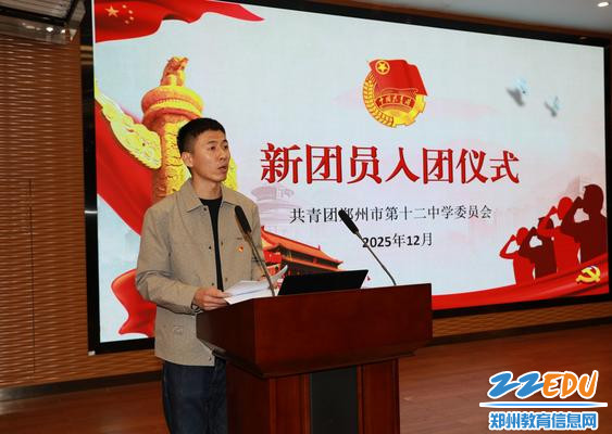 郑州市第十二中学团委副书记王超伟宣读新团员名单