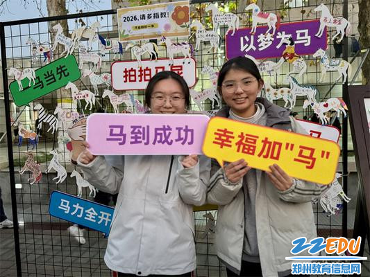 “快来拍照打卡啦!”“我要‘马到成功’!”“我来个‘幸福加马’,耶!”……2025年12月29日下午,郑州市实验高级中学南广场人头攒动,欢声笑语如冬日暖流般洋溢。原来,一场名为“时光走廊”的心理特色跨年活动正在这里温情开展。为引导学生学会驻足回望、深度反思与主动规划,以积极心态迎接新的一年,学校心理健康中心与倾心社精心策划了这场2025-2026跨年心理育人实践。