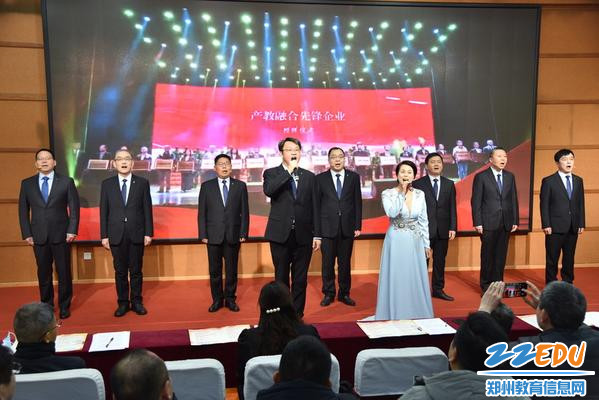学校领导班子成员集体亮相朗诵和演唱《我爱祖国的蓝天》。