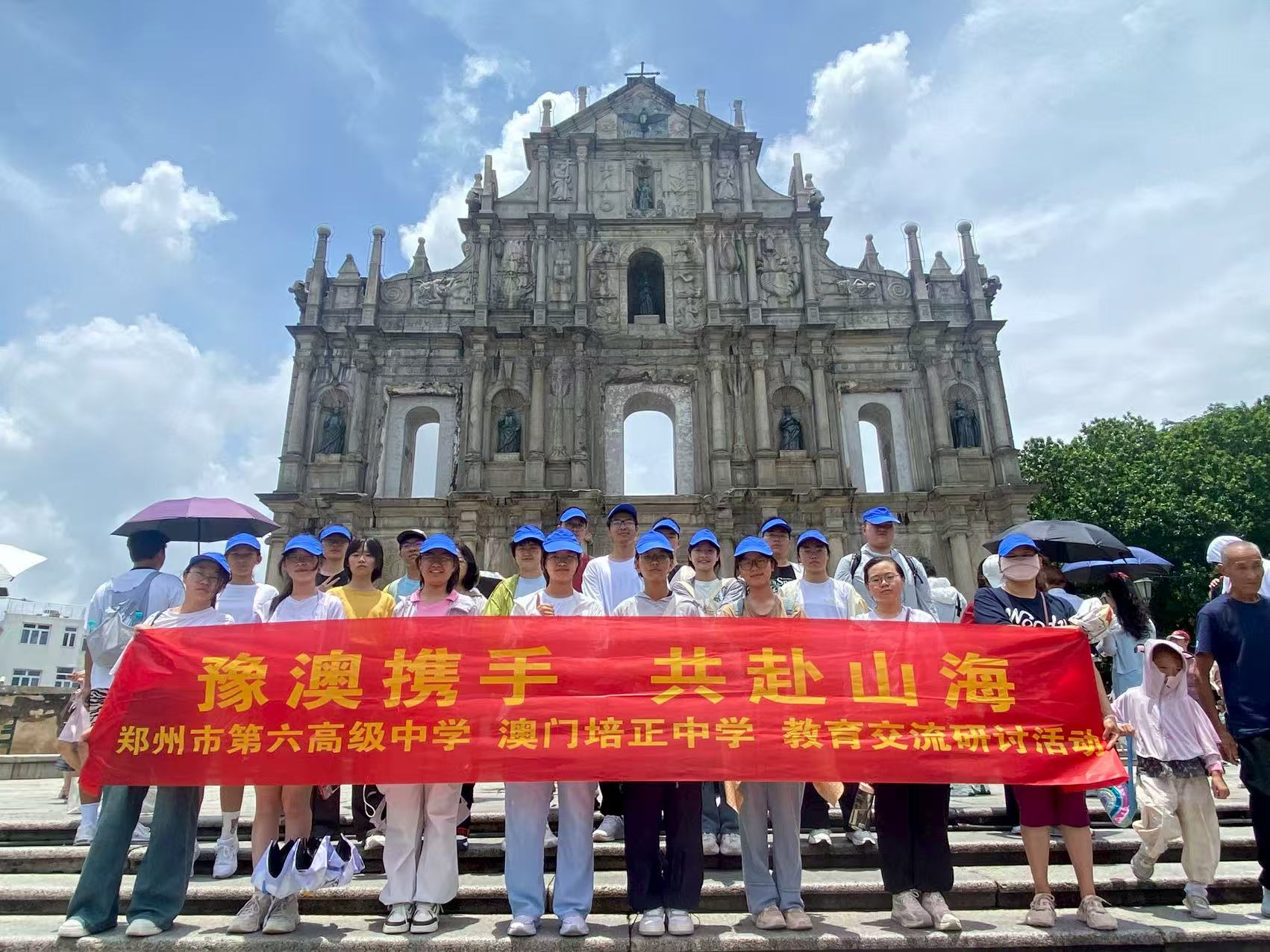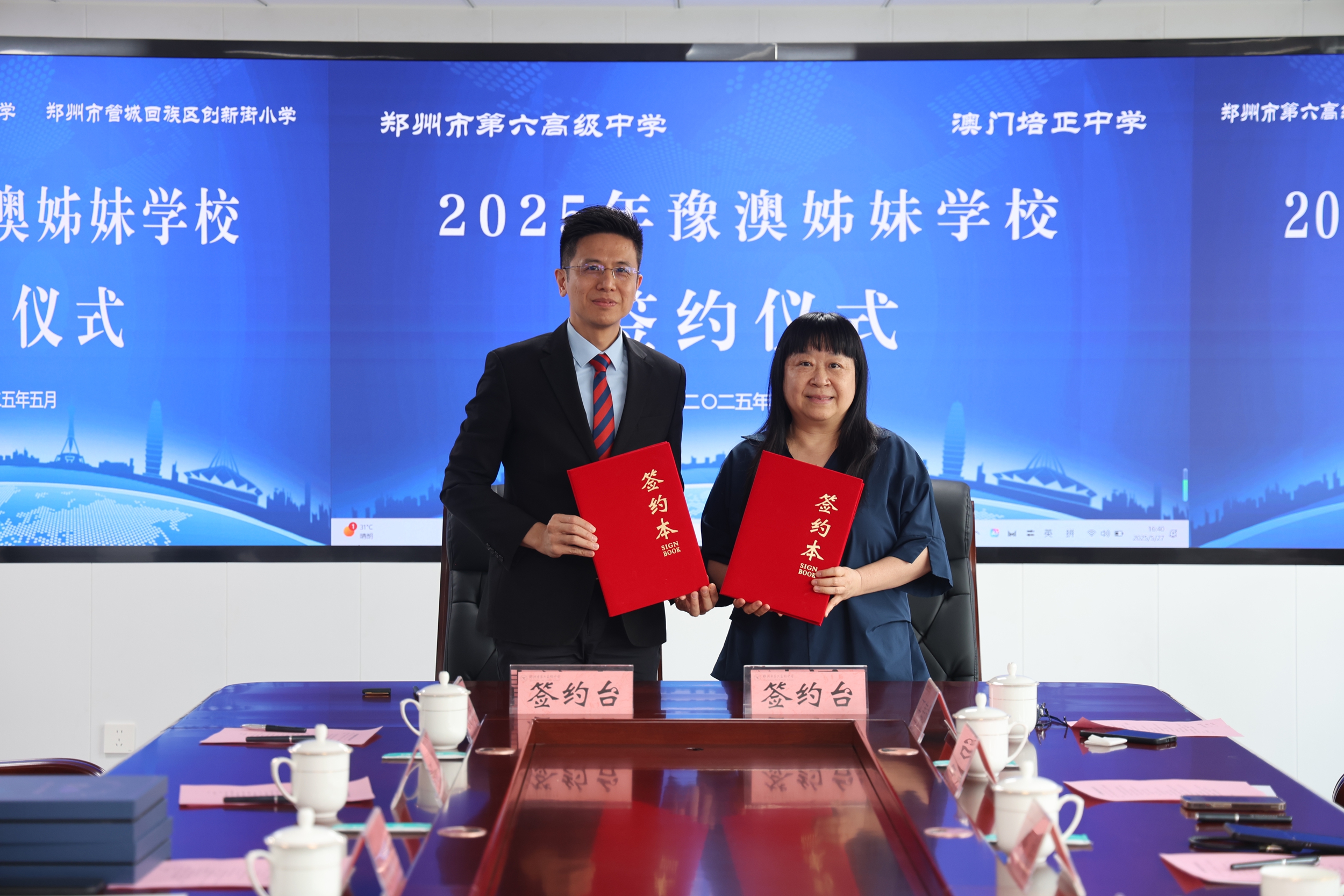 2025年5月,郑州市第六高级中学与澳门培正中学正式缔结姊妹学校,开启豫澳教育交流新篇章。双方以“零碳教育”“文化传承”“科学创新”为主题,开展校园参观、课程分享、师生互动等活动。学校优秀学子赴澳门开展文化交流,与澳门学子共探中华文化魅力,互鉴科创经验。此次合作搭建了跨地域教育平台,拓宽了师生国际化视野,奏响豫澳双城教育协同发展交响曲。