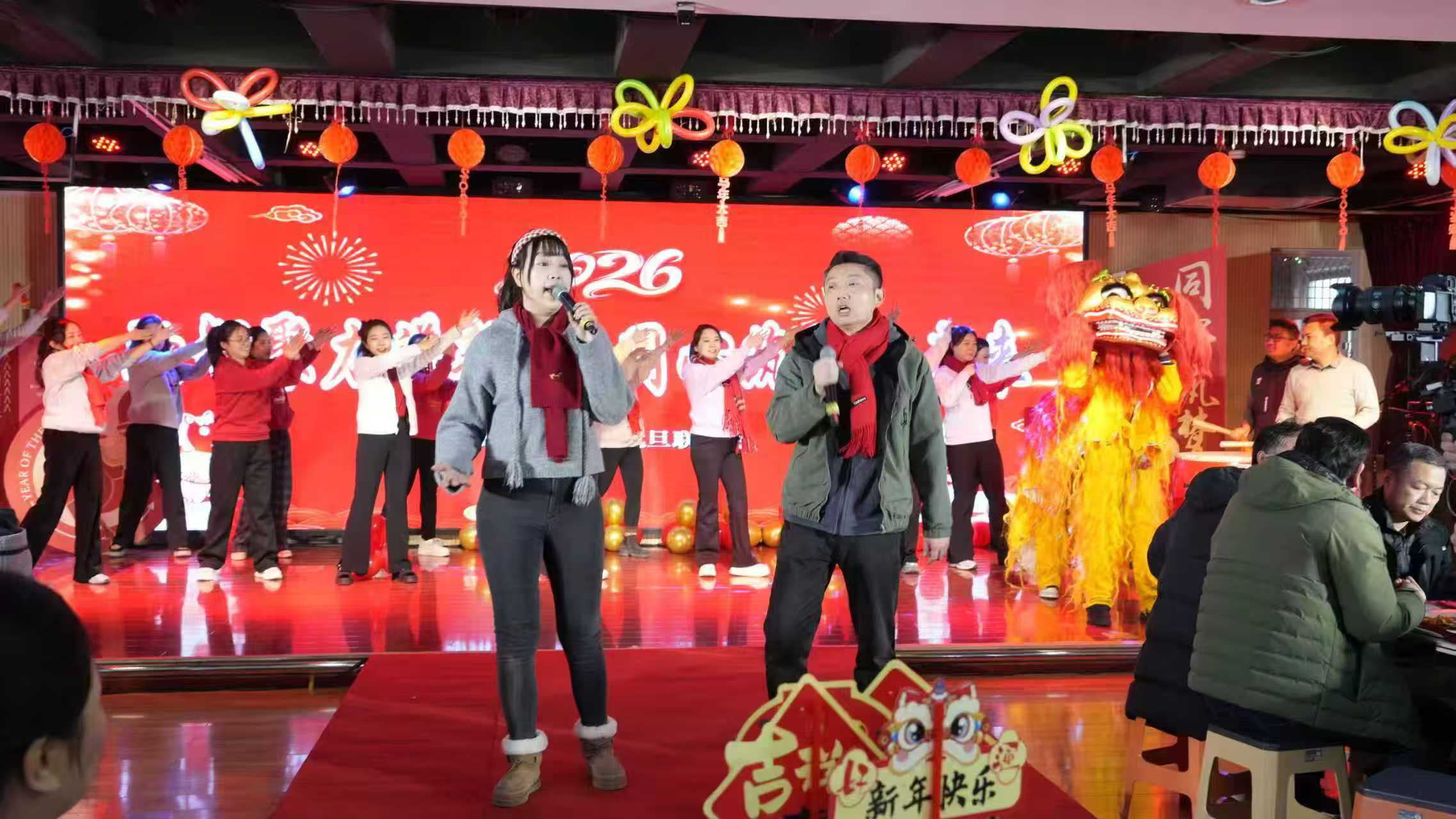 联欢会在喜气洋洋的开场歌舞与气势恢宏的《金狮鼓舞》中正式拉开帷幕,灵动的舞姿、激昂的鼓点、腾跃的雄狮瞬间点燃全场气氛,传递出浓浓的新年气息。随后,学校党委书记都亚萍发表新年致辞,她代表学校领导班子向全体教职工一年来的辛勤耕耘、无私奉献致以最诚挚的感谢和最美好的新年祝福,同时寄语全体教职工在2026年能以更饱满的热情、更务实的作风,携手并肩、锐意进取,共同书写学校高质量发展的崭新篇章。