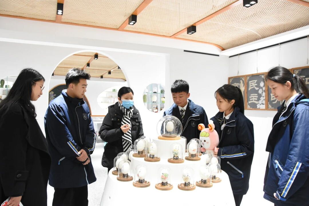 经开六中的师生共同参观育才小学“蛋”生美好艺术展馆