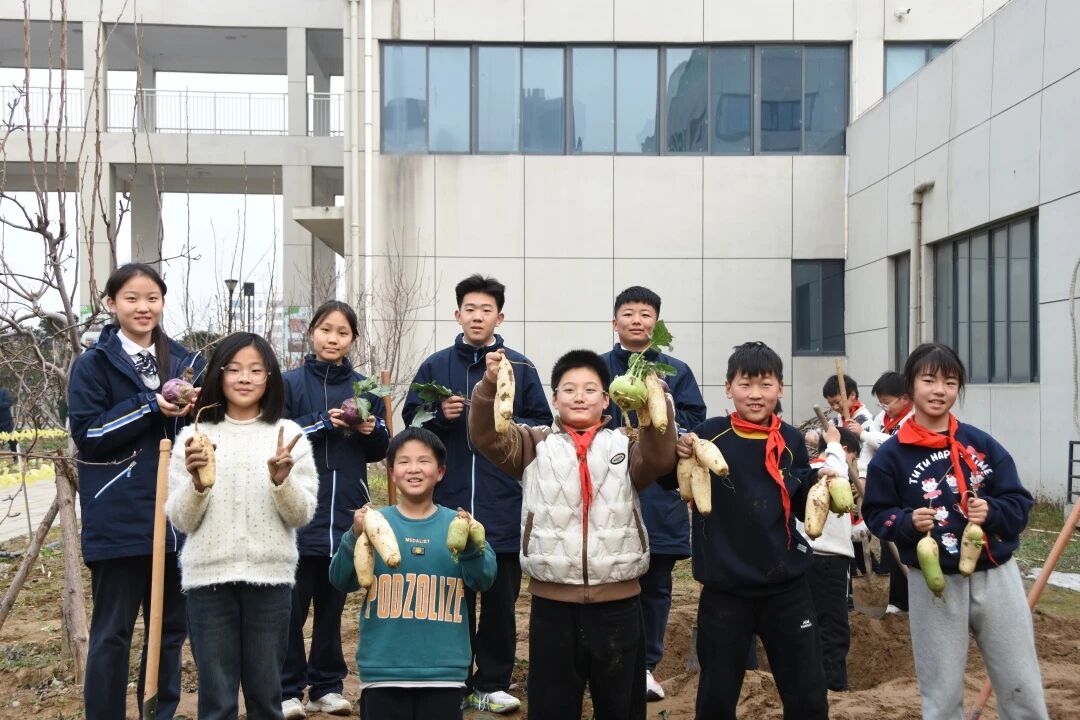 两队队员一同前往育才小学的劳动种植田园,参观育才小学学生们种植的蔬菜,一起协作挖蔬菜,看着凝结着汗水的劳动成果,队员们深刻体会到“一分耕耘一分收获”的道理,也在交流中分享着劳动的乐趣与感悟。