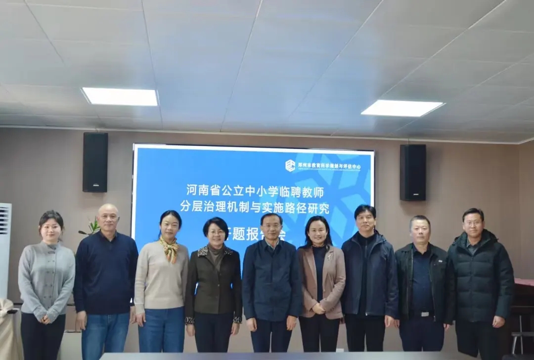 12月29日,2025年河南省教育科学规划重点课题《河南省公立中小学临聘教师分层治理机制与实施路径研究》开题报告会在郑州市教育科学规划与评估中心举行。河南省教育科学规划与评估院党委书记、院长王献甫,河南省教育科学规划与评估院教育发展研究室主任、研究员徐宏升,郑州大学管理学院党委书记王淑英等担任开题评议专家,课题组全体成员参会。会议由郑州市教育科学规划与评估中心党总支书记、主任寇爽主持。