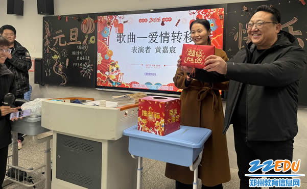 联欢会期间,学校领导走进各班教室,为师生送上精心准备的“超级大红包”和小礼物。红包内有寓意吉祥的新年寄语卡片,承载着学校对学子的殷切期望。校领导与同学们亲切互动,询问学习生活情况,并送上新年祝福,现场掌声不断,暖意融融。