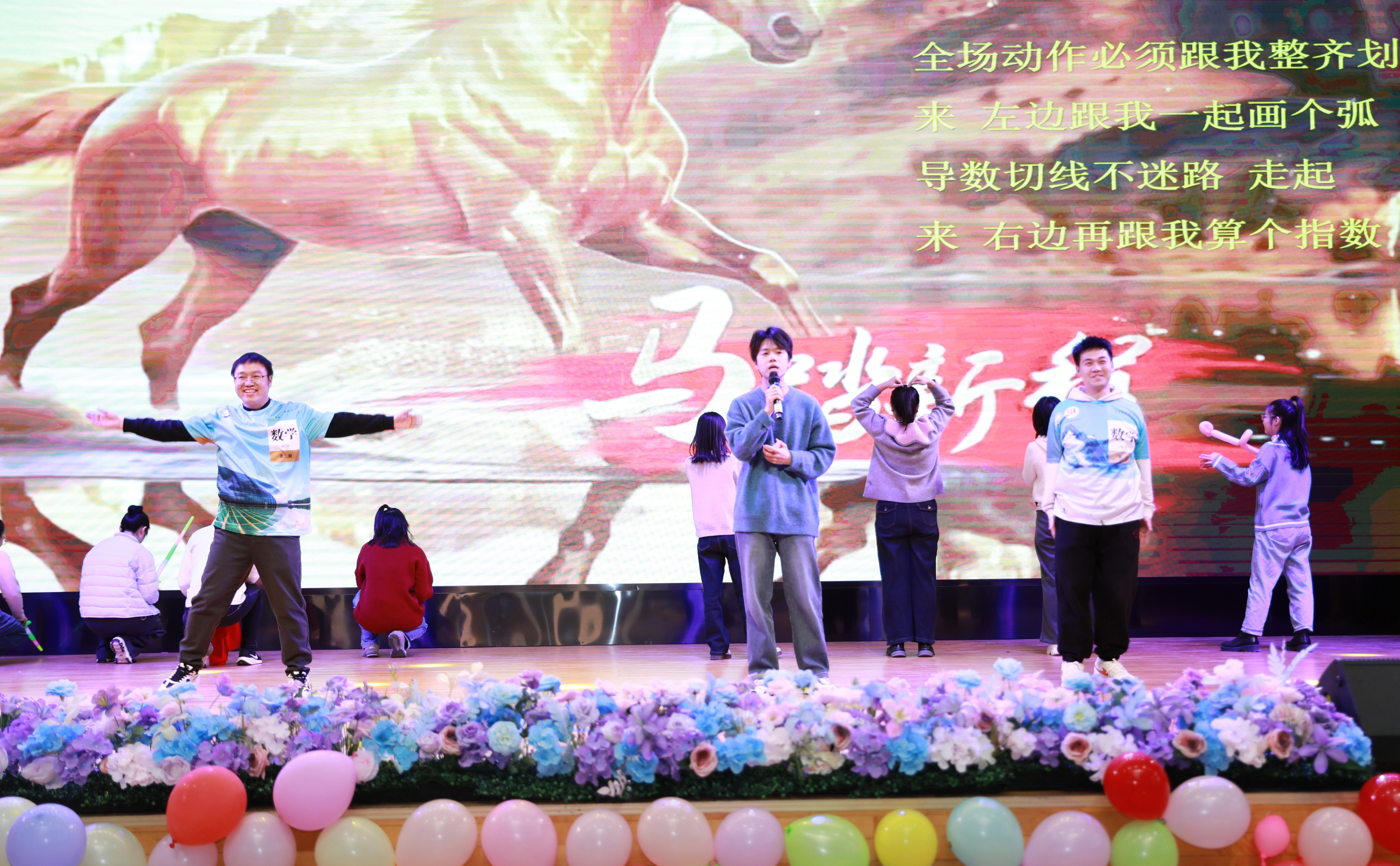 12月31日下午,联欢会在四位主持人深情真挚的开场白中正式启幕。各教研组及行政部门的老师们各展风采,奉上一场视听盛宴。行政组以《教育长歌·光阴回响》精彩开篇,学校领导班子成员带来的《粉笔三叠·师者春秋》,演绎教师生涯的动人画卷——二十初绽梦想,四十深耕育人,五十坚守传承,集体朗诵铿锵有力,尽显教育信仰。朗诵尾声,《光阴的故事》旋律温柔响起,感叹时光流逝;随即切换至《少年》高潮部分,行政工会组全体成员迅速列队起舞,动静之间诠释育人初心,定格瞬间掌声雷动,展现教育工作者的坚守与热忱。