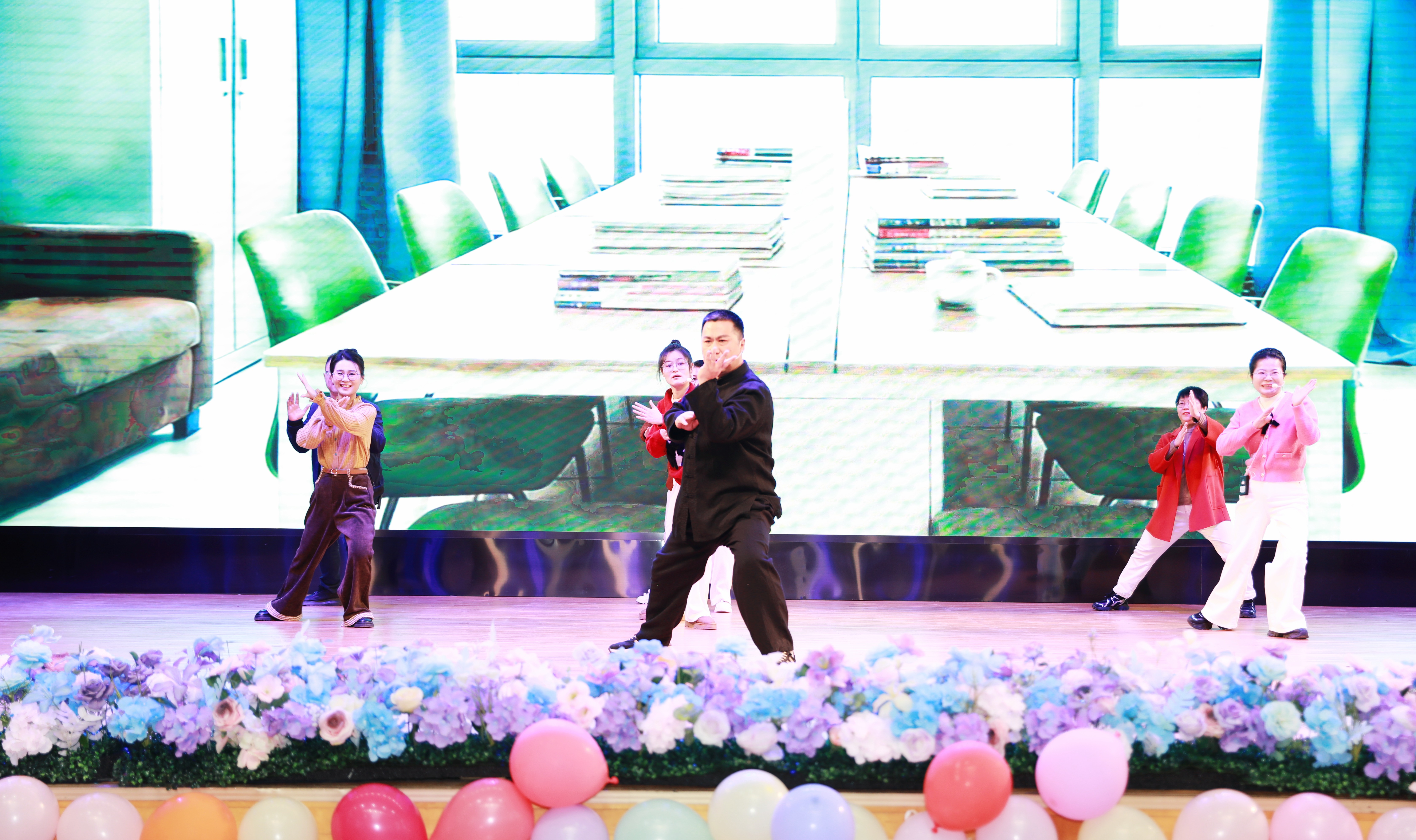 政治组与历史组联合朗诵《盛世如愿》,声音铿锵、情感饱满,抒发对祖国盛世的深情礼赞;数学组一曲《数学disco》点燃全场,用动感说唱演绎公式定理,颠覆刻板印象,喝彩不断。生物组小品《生物组里觅太极》融科学于传统,刚柔并济;历史组王勇老师一曲《想家的时候》,唱出佳节时分对家的思念;政教处与物理组共舞《护花使者》,复古旋律中传递守护的温情;化学组歌舞《教师阵线联盟》,展现教育人同心同德、并肩前行的精神风貌。