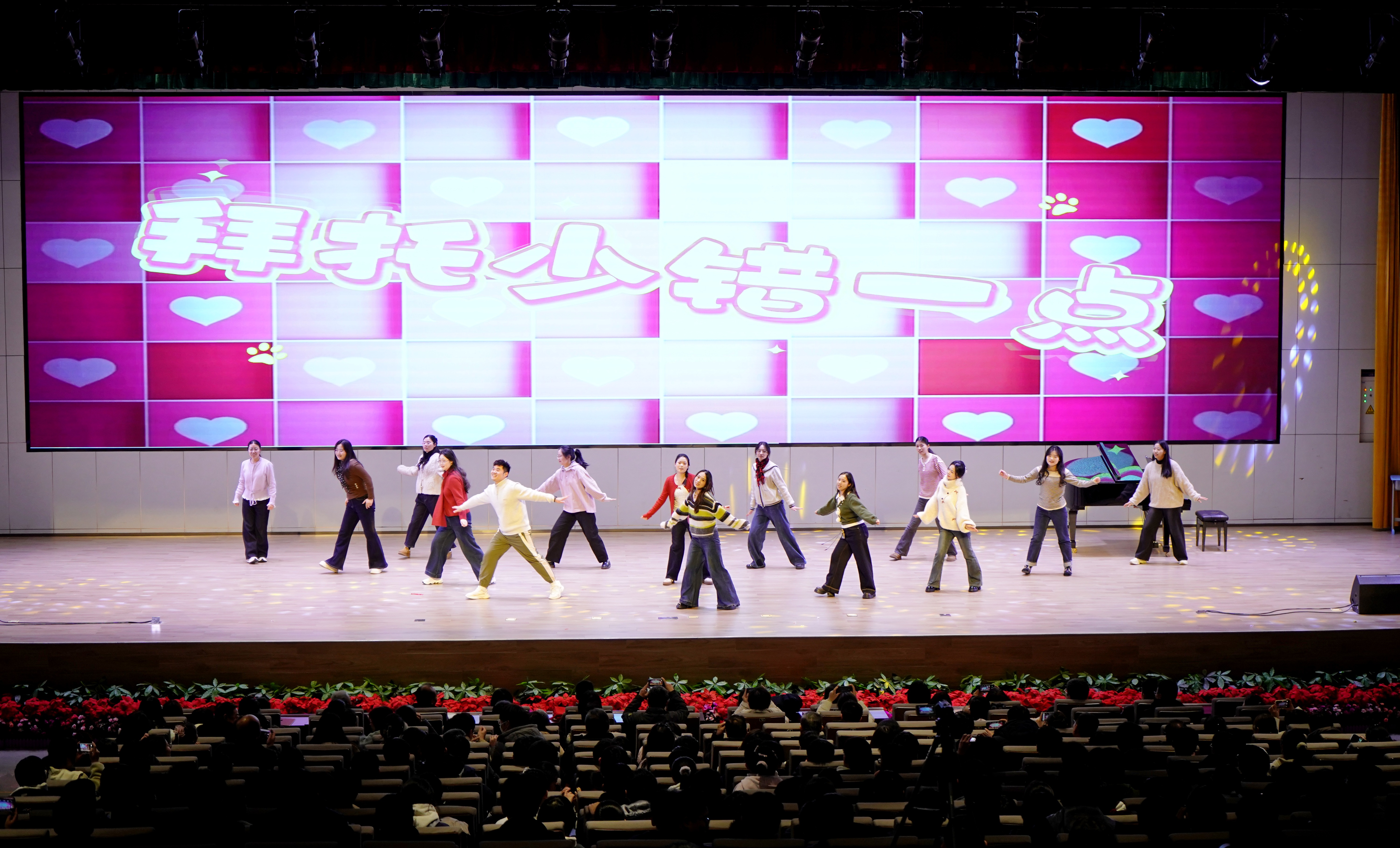 教师团队让联欢会的“同乐”氛围更显浓厚。高一教师团队带来舞蹈《爱你》,灵动的舞姿、亲切的互动,传递出师者柔情;高三教师团队唱响《敬业阵线联盟》,激昂的旋律、真挚的情感,致敬了教育岗位的平凡与伟大,展现了教师的责任与担当。师生同台献艺、默契互动,每一个瞬间都定格成校园里最温暖的画面。