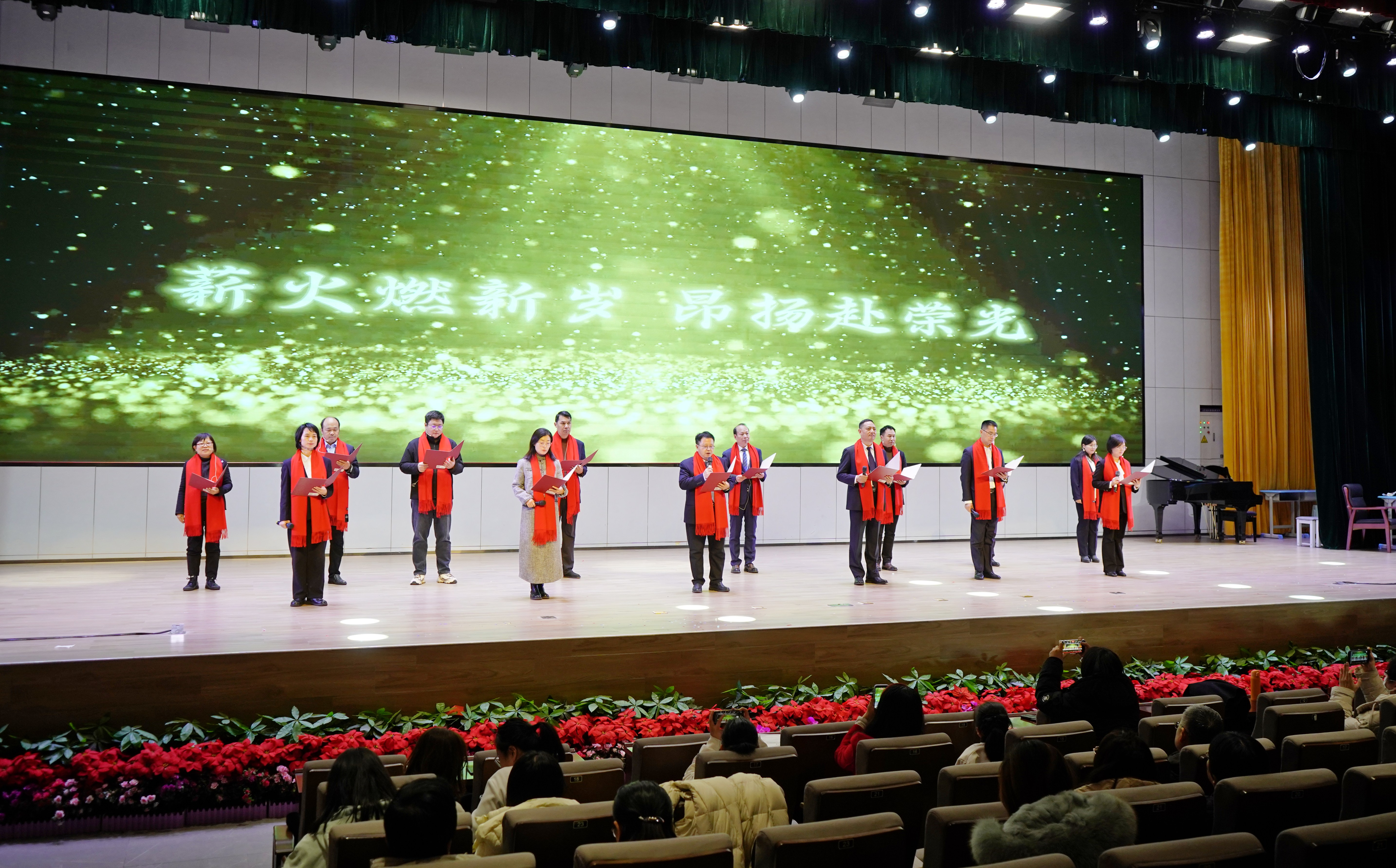 郑州市第五高级中学校领导带领中层干部朗诵《薪火燃新岁 昂扬赴荣光》