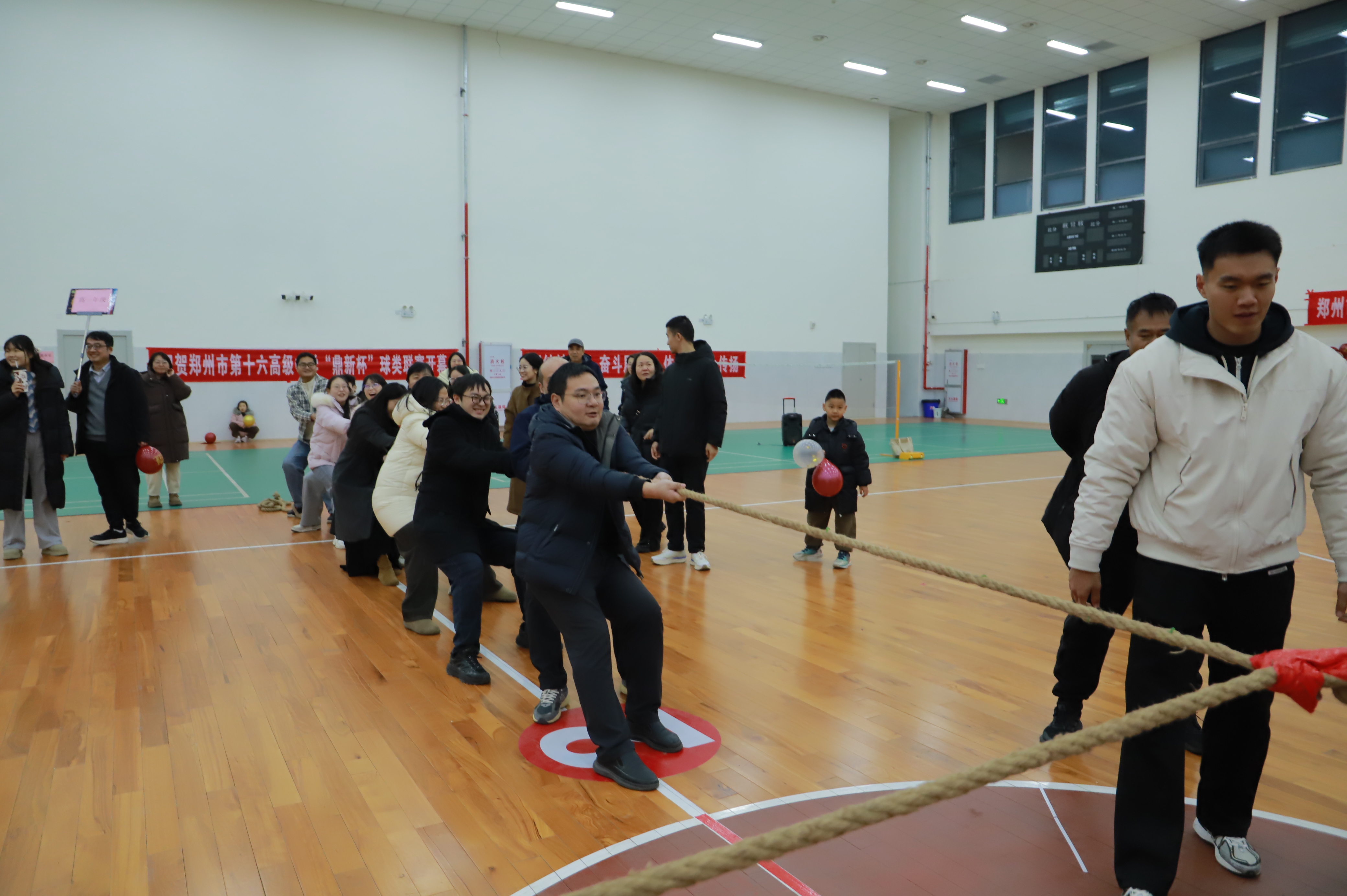 2025年12月31日下午,郑州市第十六高级中学体育馆二楼暖意融融、笑语飞扬,“喜迎元旦,欢乐游园;凝心聚力,共创未来”2026年教职工迎元旦趣味联欢活动在此温馨启幕。全体教职工欢聚一堂,在趣味运动与温情互动交织的氛围里放松身心、增进情谊,共同迎接2026年的到来。