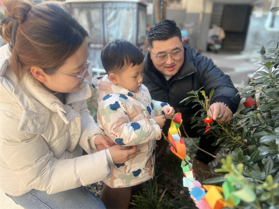 冬日暖阳下,孩子们排着队伍,攥着亲手制作的拉花和灯笼,小心翼翼地为光秃秃的树枝“穿新衣”。微风拂过,彩色拉花翩翩起舞,红灯笼轻轻摇曳,引得孩子们阵阵欢呼。随后,孩子们带着自制的新年祝福卡片,害羞地走到社区老人身边,向他们甜甜地道一声“新年好”。老人们接过卡片,满脸皱纹都漾起笑意,有的轻抚孩子的头道谢,有的送上美好祝愿。小小的卡片,串联起童真与温情,让冬日更添暖意。