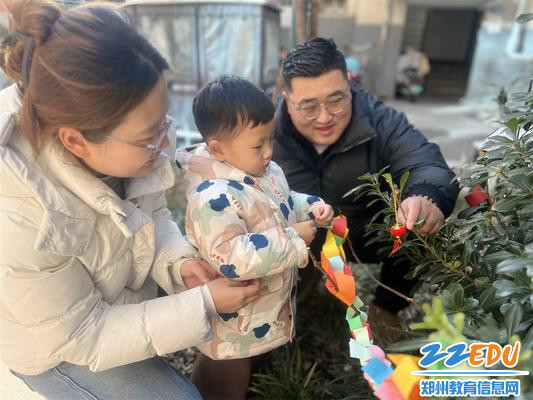 随着春节临近,郑州市百花路46号院洋溢着浓浓的童趣年味。五彩拉花缠绕枝头,红灯笼点缀廊间,这是郑州市实验幼儿园联合中原区林山寨街道办事处百花社区开展的“欢欢喜喜迎新年”托幼一体化活动现场。作为郑州市教育科学重点课题《托幼一体化背景下托班家园社共育路径的实践研究》的重要实践,本次活动将幼儿园、家庭与社区紧密联结,为2-3岁托班幼儿打造了沉浸式成长体验。