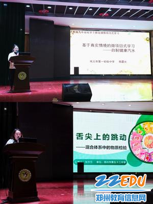 巩义市第一初级中学教师郑晨光以《自制健康汽水》开启微项目式学习,引导学生在舌尖体验中理解酸碱反应与气体溶解;郑州市第五十二中学教师张莎莎的《舌尖上的跳动——碳的氧化物》,巧妙借饮食文化讲清二氧化碳的性质检验与溶解度在生产中的应用;新郑市龙湖镇第一初级中学教师张旭以《“嫦娥”奔月记——金属化学的深空答卷》将航天领域金属的应用与制取引入课堂;郑州市郑东新区外国语学校教师吴金兰通过《助力碳中和,科学兴强国——多角度认识二氧化碳》,融合生态文明教育与绿色化学思维;中牟新区第八初级中学教师姬明珠、郑州市第三中学教师孙筝筝、郑州经开区龙飞中学教师李凯洁分别围绕水开展进阶教学——从宏微结合再识水的构成,到探究水的组成与净化原理,形成“现象—模型—应用”的完整认知链;郑州丽水外国语学校教师范佳馨通过《再探氧气》,引导学生利用生活器材创新实验装置,培养学生创新意识。