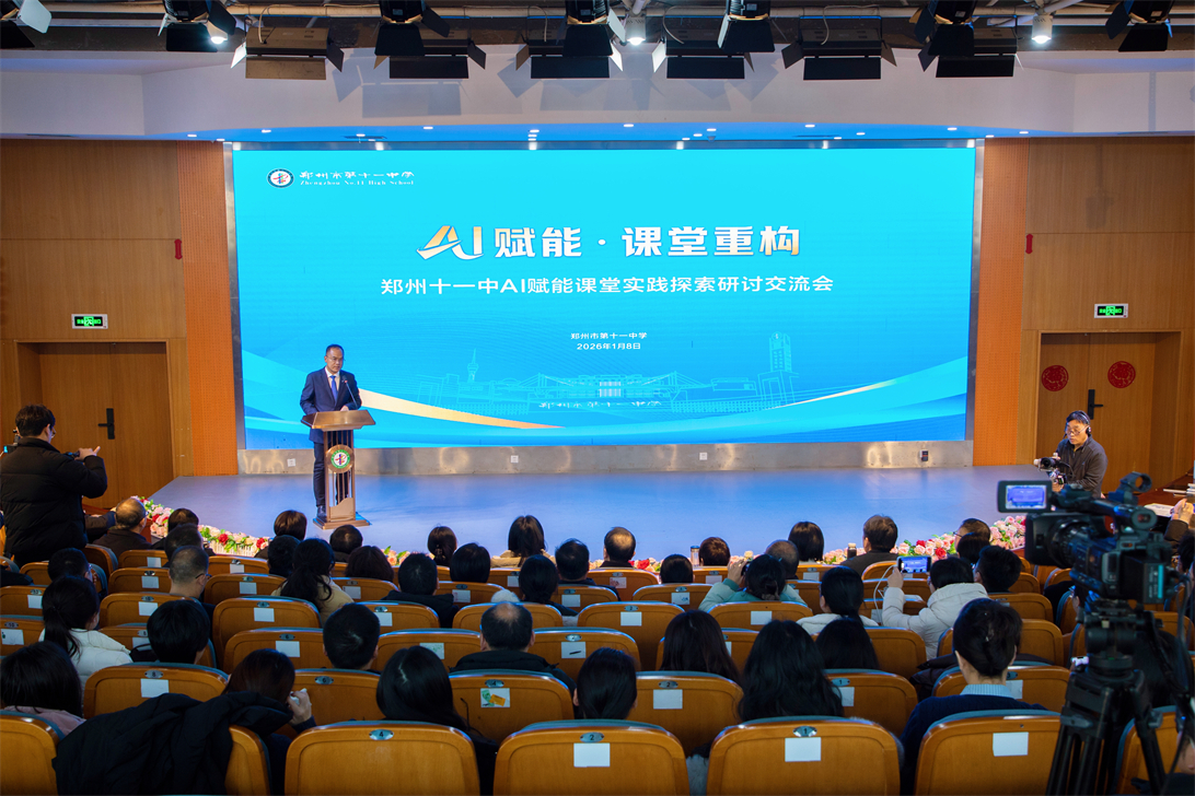 为深入贯彻教育数字化战略,推动人工智能与基础教育深度融合,1月8日,郑州市第十一中学举办AI赋能课堂实践探索研讨交流会。河南省基础教育课程与教学发展中心的领导专家、名校长培训班代表,对口支援学校、郑州市第六教研共同体成员学校以及郑州市第十一中学教育集团成员学校等单位的教师齐聚一堂,共同见证AI技术为课堂教学带来的革新与突破。活动由郑州市第十一中学教务处主任杨增勋主持。
