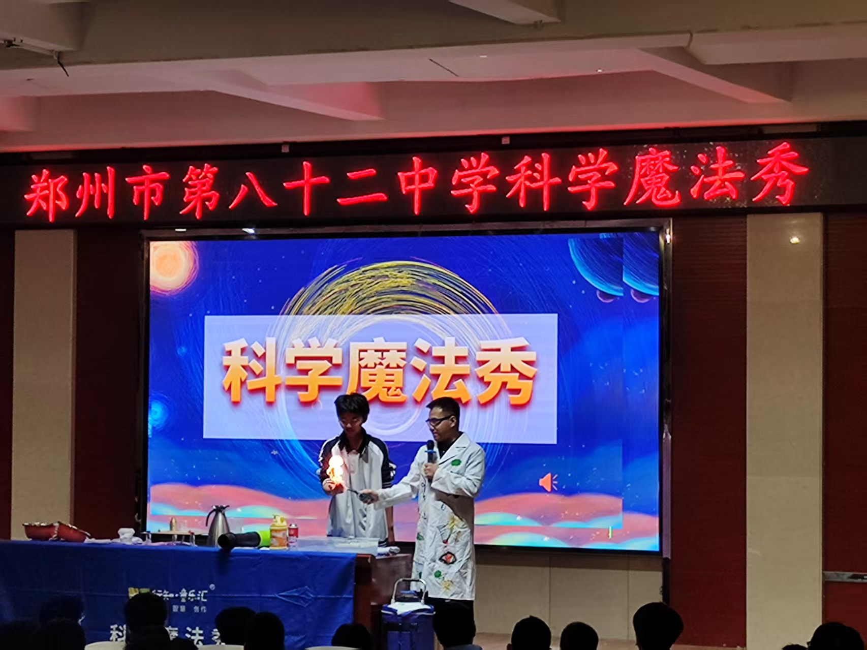 3月26日,郑州市第八十二中学“科学秀实验”酷炫上演!嘭!液氮蘑菇云腾空起!哗!火焰在掌心起舞!瞬间点燃全场科学小宇宙!