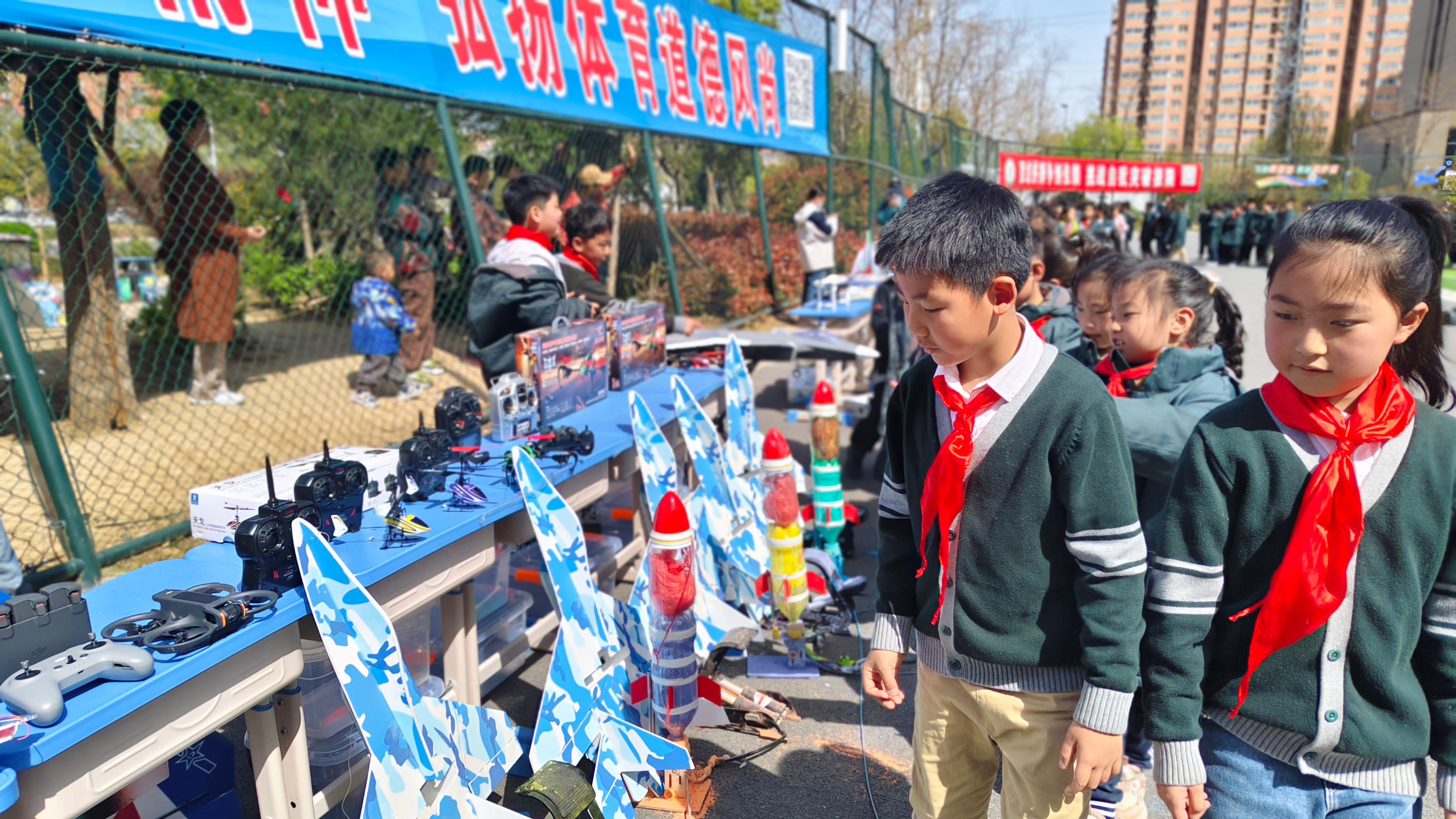 4月1日,漓江路小学第二届科技节火热来袭!“科技童行,创新有我”是口号!无人机编队划过蓝天,迷你车模挑战高空走钢丝,互动体验High翻天!