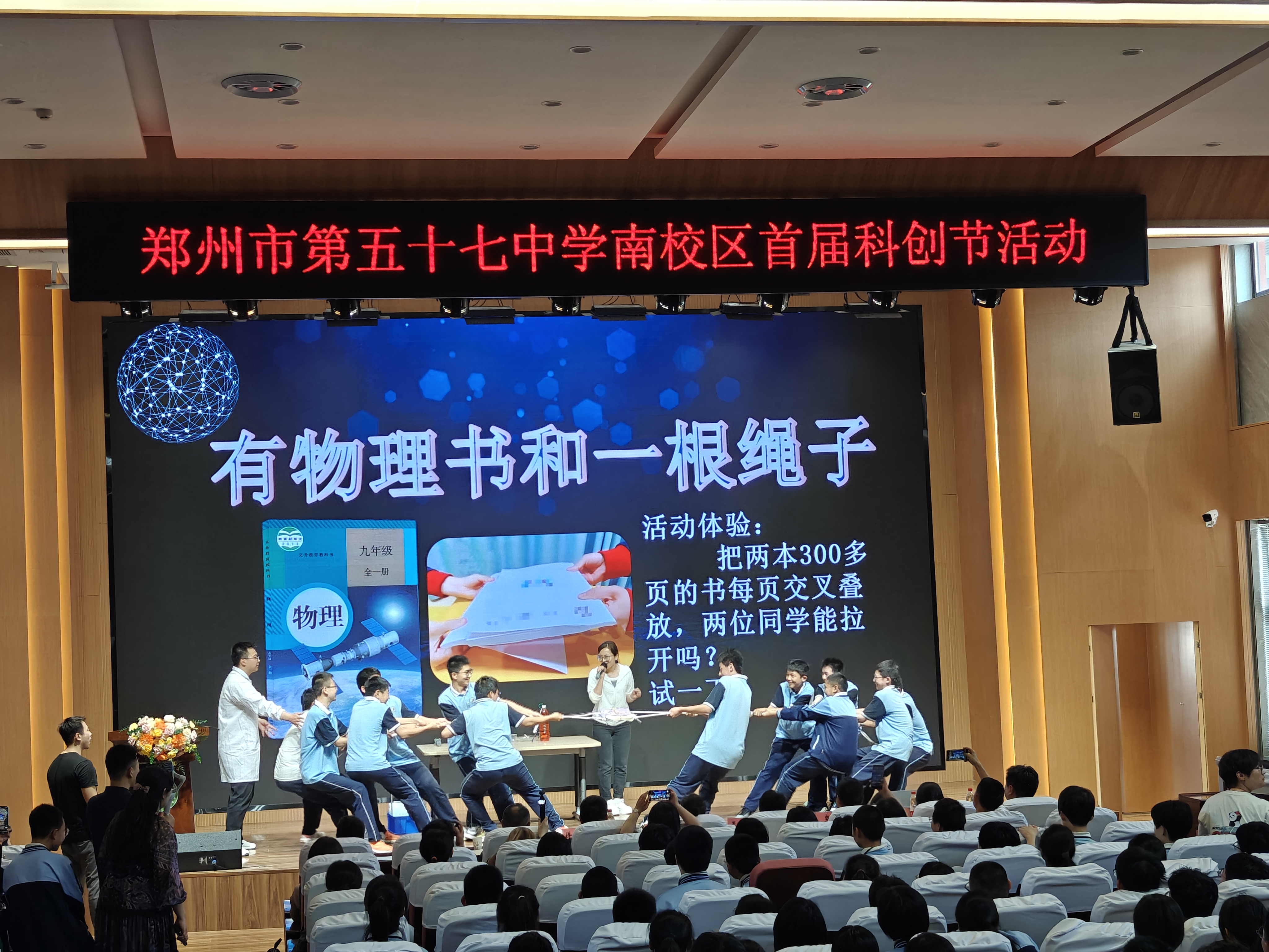 5月13日,郑州市第五十七中学南校区首届科创节活动盛大开幕!“主会场+分会场”玩转科学!神奇实验目不暇接,环保时装秀脑洞大开,机器人舞步炫酷全场!
