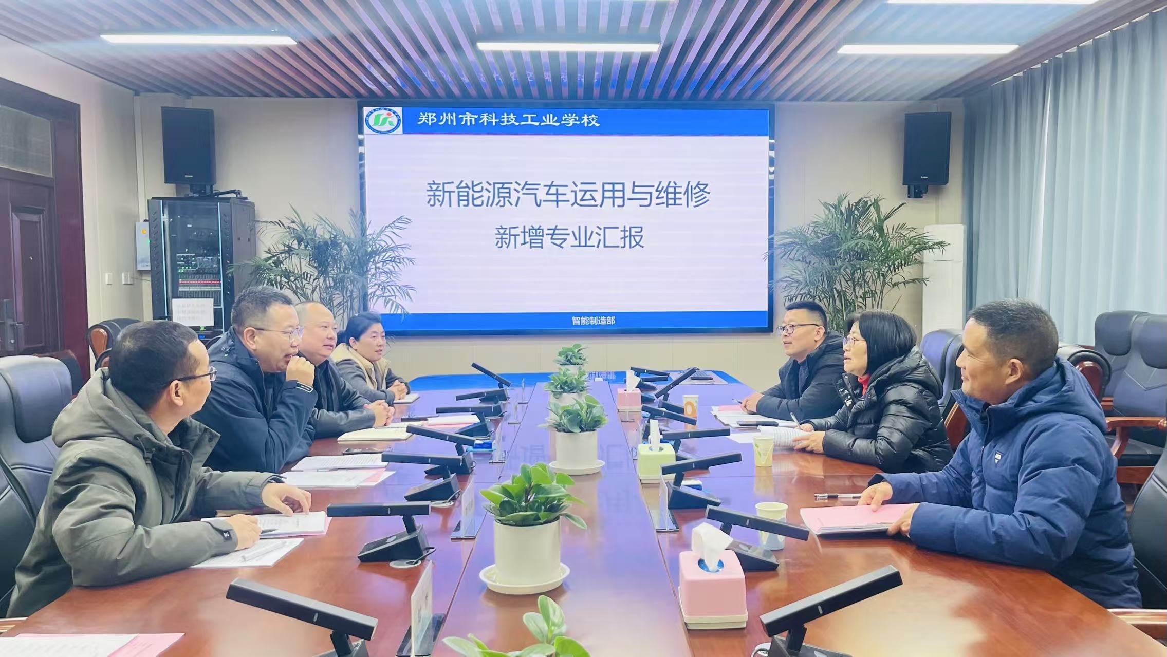 为把脉专业发展方向,优化人才培养方案,切实提升专业服务产业发展能力,夯实新能源汽车领域人才培养阵地,1月13日下午,郑州市金融学校副校长韩洁,郑州市教育科学规划与评估中心教研员袁世军,郑州市国防科技学校汽车专业部主任张志臻一行,到郑州市科技工业学校开展新能源汽车运用与维修专业新增专业验收工作。郑州市科技工业学校校长郭国峰,智能制造部主任李应峰、教学副主任闫艳、德育副主任刘森参加会议,学校教务处副主任罗素保主持验收会议。
