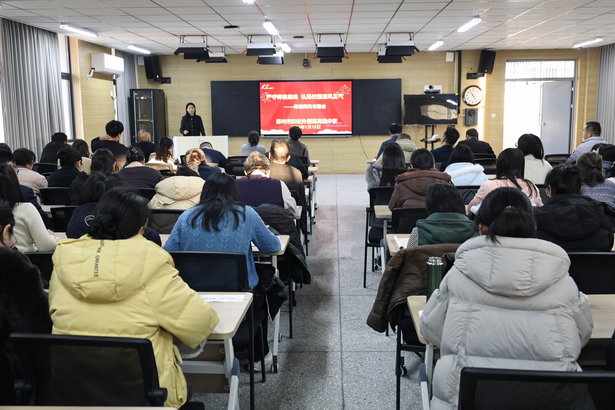 为深入贯彻教育部及河南省关于教师职业行为的相关规定,进一步加强学校师德师风建设,提升教师队伍的职业道德素养和育人能力,1月15日,郑州市扶轮外国语高级中学组织全体教职工召开师德师风专题学习会。