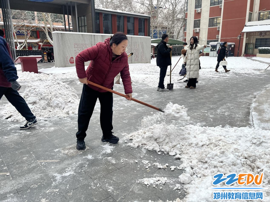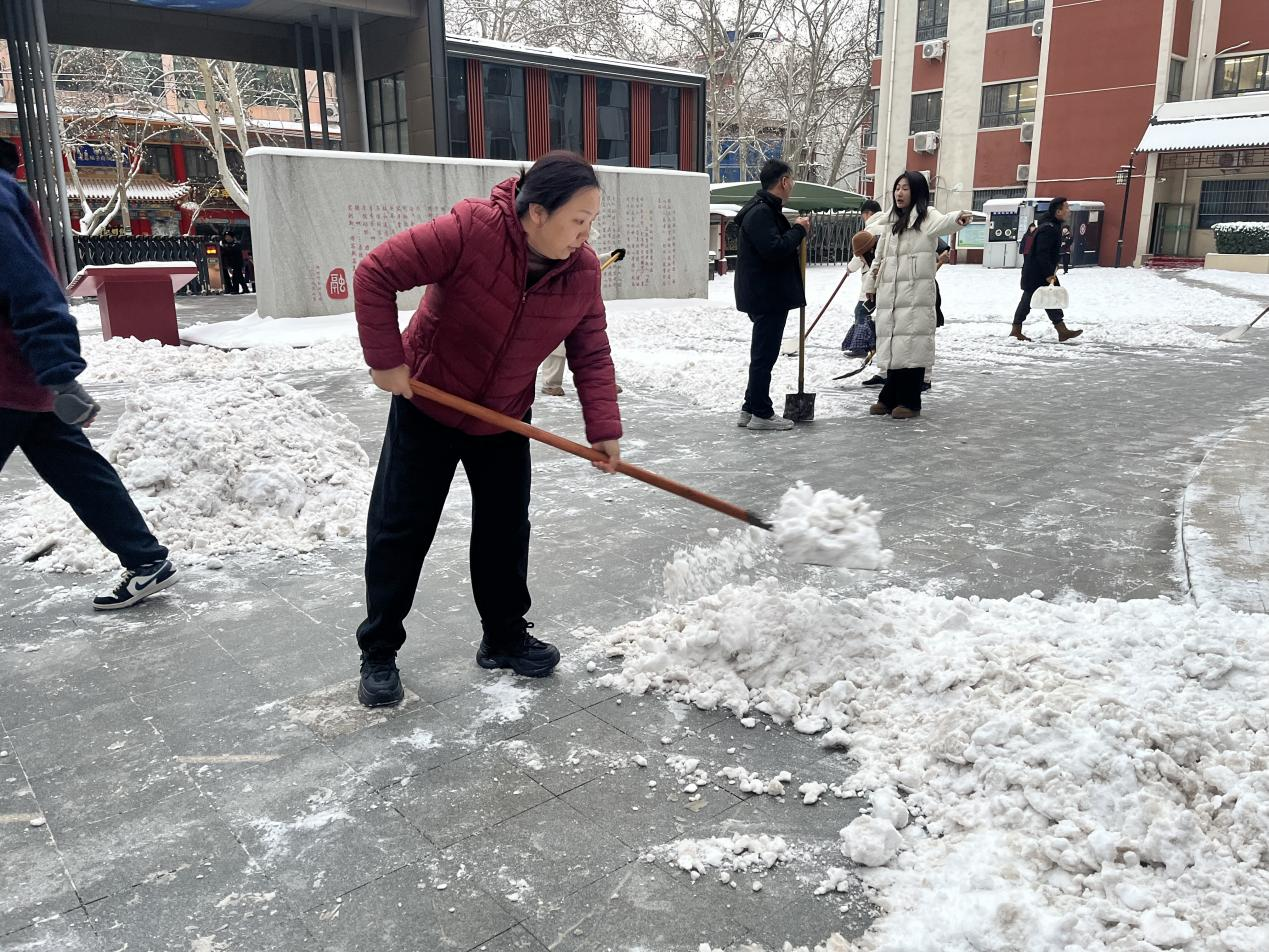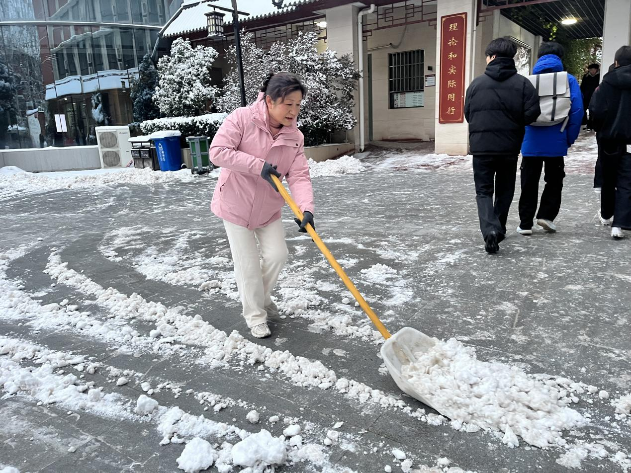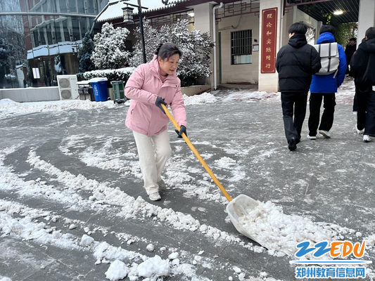 郑州市金融学校党委书记都亚萍带头铲雪