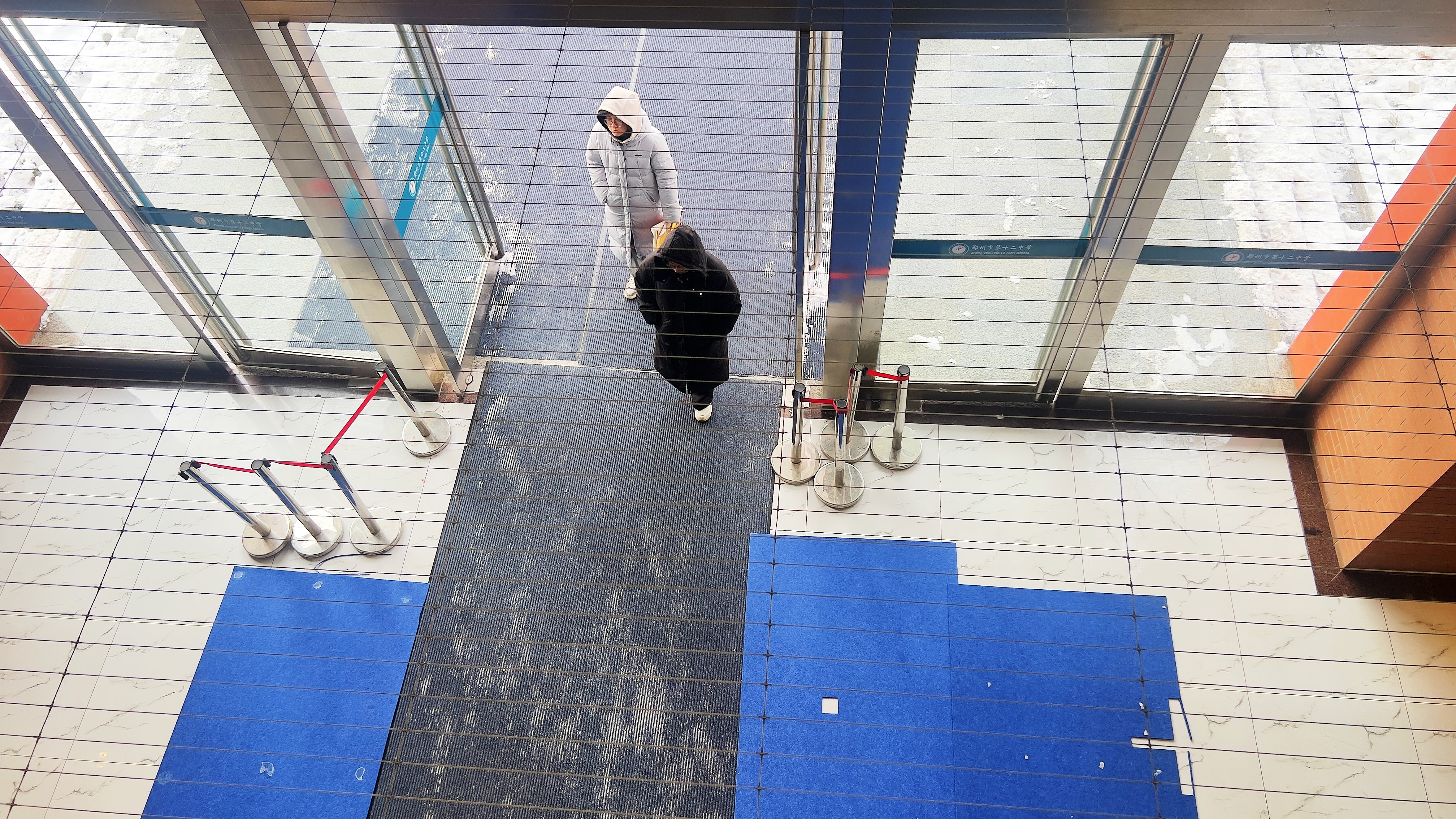 与此同时,学校同步做好配套保障,在教学楼、餐厅的瓷砖路面全面铺设防滑毯,从“清雪破冰”到“防滑防护”,全方位守护师生出行安全。经过近两小时的连续奋战,校园主要通行道路的积雪与暗冰被彻底清除,一条条干净通畅的“暖心路”如期铺就,迎接师生往来。
