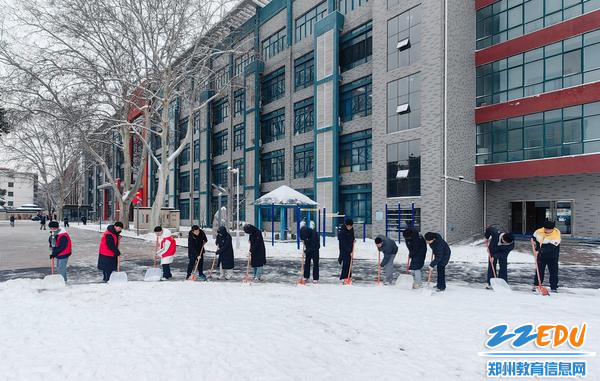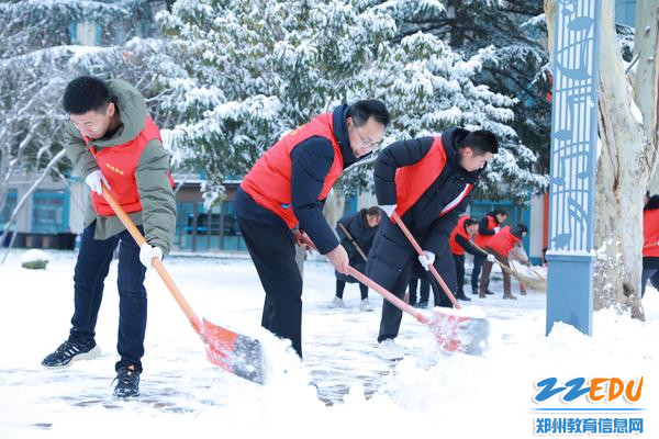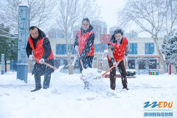 郑州市第十二中学党委书记陈立新带头参与除雪行动
