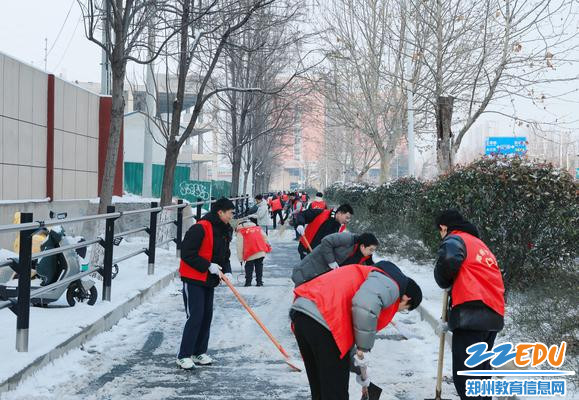 从校内道路的畅通无阻,到校外街巷的安全守护,从动员令的迅速响应,到师生志愿者的积极参与,郑州市第十二中学始终将“劳动育人”“责任育人”理念融入实践,更将“奉献、友爱、互助、进步”的志愿服务精神深植于师生心间。