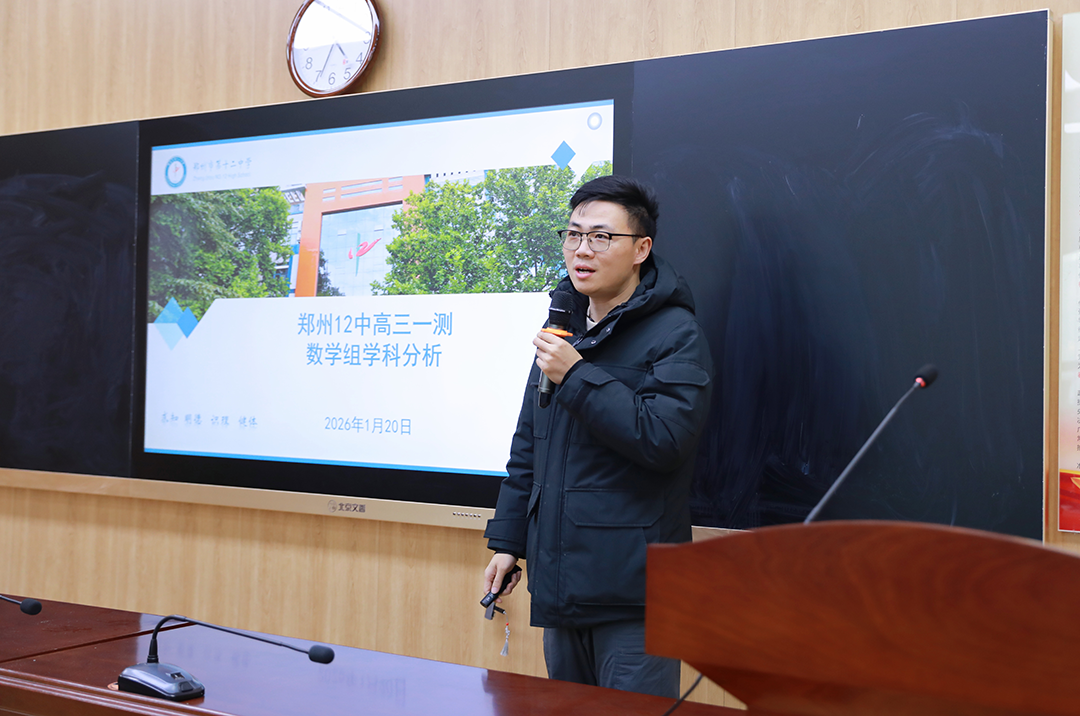 为科学诊断高三第一阶段复习成效,精准部署下阶段备考策略,郑州市第十二中学于1月20日召开高三年级第一次质量检测分析会。学校党委书记陈立新、校长周铭、副校长史克威与高三年级教师参会。会议通过经验分享、精准分析与分组研讨,统一思想,明确路径,凝聚力量。