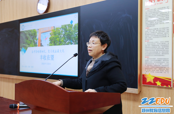 随后,学校高三年级长郝云龙通过数据对比,回顾了本学期历次联考情况。他点明本次考试呈现出“上线基础稳步提升、优势学科持续突出”两大亮点,为后续复习奠定了良好基础。学校教务处副主任钮亚军则以“明问题、定策略、稳节奏”为主线,强调深入分析数据、扎实规划二轮复习,并落实日常教学闭环管理。学校副校长史克威围绕“备考策略精细化,复习效益最大化”提出具体要求,涵盖班级管理、文化课复习、学生活动及假期安排等方面。
