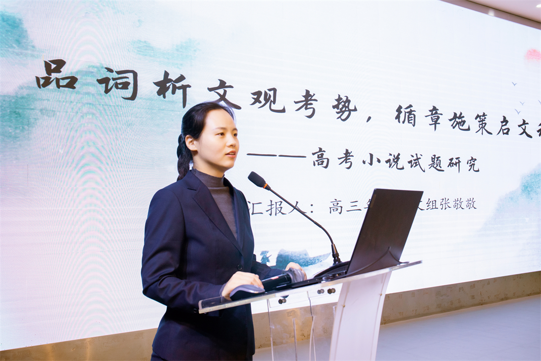 在文科组汇报中,语文组张敬敬老师聚焦小说阅读命题趋势,提出构建知识体系、强化文本细读等备考策略;英语组郭紫君老师针对记叙文阅读失分问题,分享了语境解读、结构化阅读等应对方法;政治组屈远霄老师围绕核心素养,强调通过模型构建与热点结合提升解题能力;历史组黄嘉幸老师聚焦历史解释素养,探索了多维度史料分析与批判性思维培养路径;地理组杨思璇老师以尺度思维为核心,总结了定位、拆解、关联、验证的四步教学法。