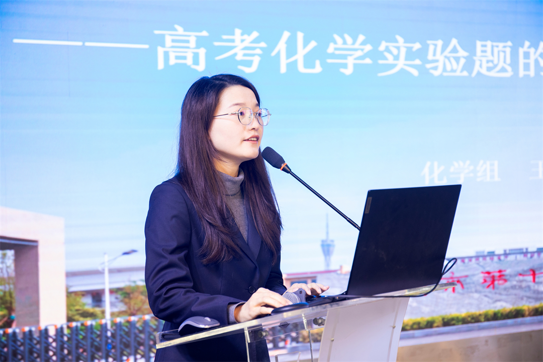 在理科组汇报中,数学组张雅坤老师结合2025版课标变化,明确了素养导向、真实情境应用的备考方向;物理组王庆龙老师立足试题情境创新,提出基础夯实、分层教学与错题复盘的备考方案;化学组王玉环老师聚焦实验题,分享了基础技能巩固、思维建模与规范答题的训练策略;生物组边瑞老师围绕教材核心与真题导向,形成了基础扫盲、专题突破、冲刺提分的三阶备考模式。