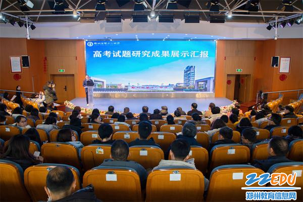 1月21日,郑州11中高考试题研究成果展示汇报活动举行。活动分文、理科两大板块有序开展,九个学科组的教师代表依次登台分享研究成果。中牟新区教育局相关领导、中牟新区跟岗研修的高中副校长、郑州11中副校长弋松伟以及学校全体教师参加活动。