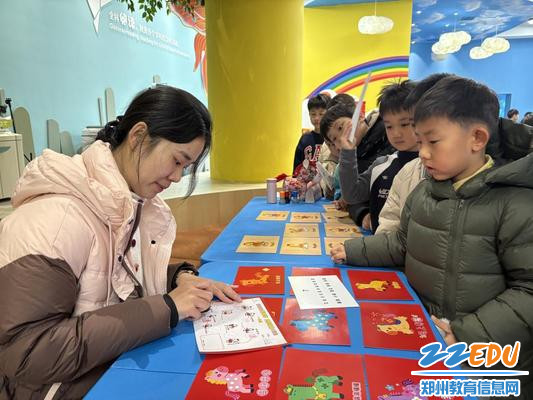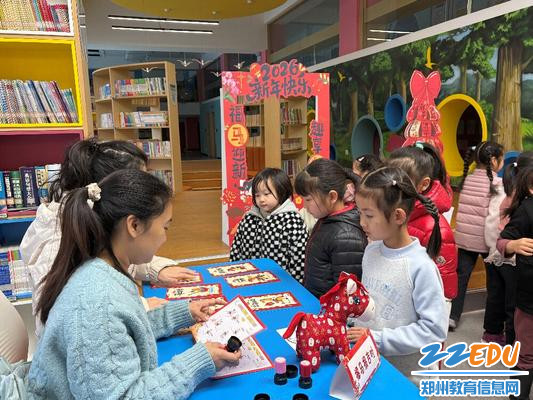 为深入贯彻落实“双减”政策及“五项管理”要求,积极探索以素养为导向的学业评价新路径,2026年1月22日至23日,郑州师范学院附属小学在校园美好阅读中心精心开展了以“新春游园嘉年华 欢乐寻宝大冒险”为主题的低年级期末学业素养评价活动。此次活动巧妙地将学科知识与欢庆新春佳节情境深度融合,让学生在沉浸式、游戏化的闯关体验中尽情展示学习成果,真正实现了“在玩中学、在评中长”。