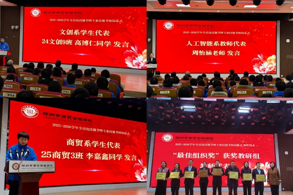为全面贯彻落实国家职业教育改革精神,深化“岗课赛证”综合育人模式,切实提升学生专业技能与综合素养,郑州市商贸管理学校于2025年12月22日至2026年1月21日,举行2025-2026学年全员化技能节暨专业技能考核。本次活动历时近一个月,覆盖全校2025、2024级全体学生,共设置4大类、17个赛项,全方位、多层次地展示了商贸学子的专业技艺与青春风采。