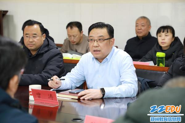 座谈会上,曾涛介绍了郑州市第三十一高级中学近几年教育教学工作的开展情况,以及各学科教学教研、教学工作开展中存在的瓶颈问题,期望通过此次专家进校,精准诊断课堂,以教研赋能教学。曹章成对郑州市第三十一高级中学积极推进教育科研表示肯定,鼓励学校要坚持问题导向,聚焦核心素养、提高核心效能,以教研为引领,激发内生动力。