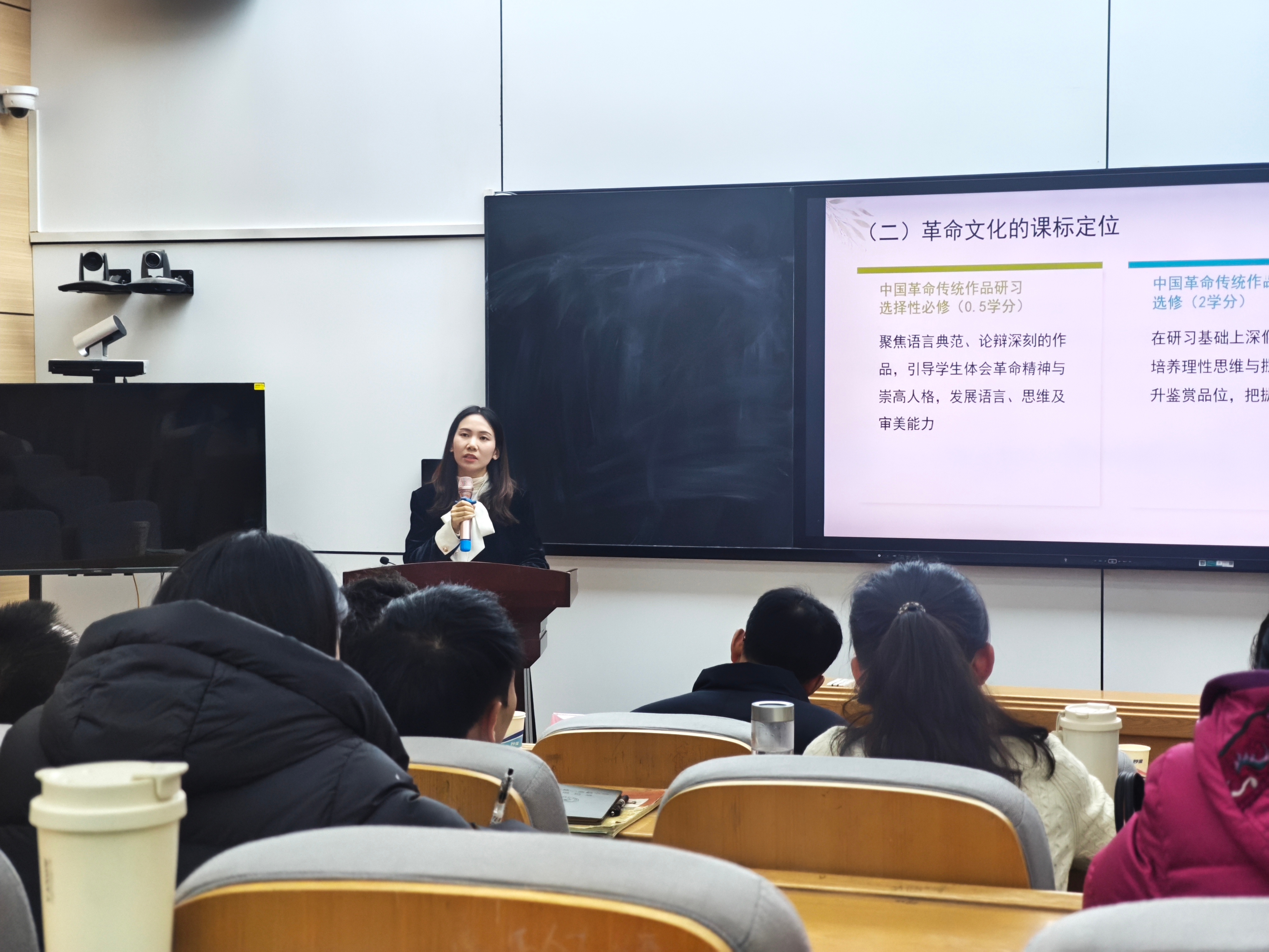 余昆仑围绕观摩课进行专业点评,并开展专题讲座,强调革命文学教学应注重价值引领与思维提升,实现“评教学”的良性互动。