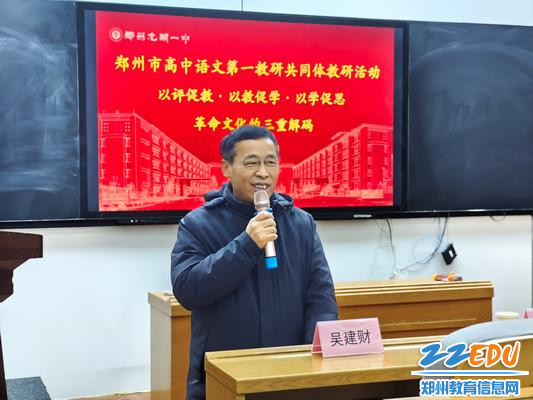 最后,郑州龙湖一中党委书记吴建财与参会人员分享了国家课程标准的育人导向和对初高中语文教学一体化推进的深刻认识,并代表学校感谢郑州市基础教育教学研究室专家的指导及各校同仁的支持,期待以本次活动为契机,进一步推动高中语文教学改革落地。