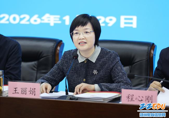 郑州市委教育工委常务副书记,市教育局党组书记、局长王丽娟主持会议并讲话。