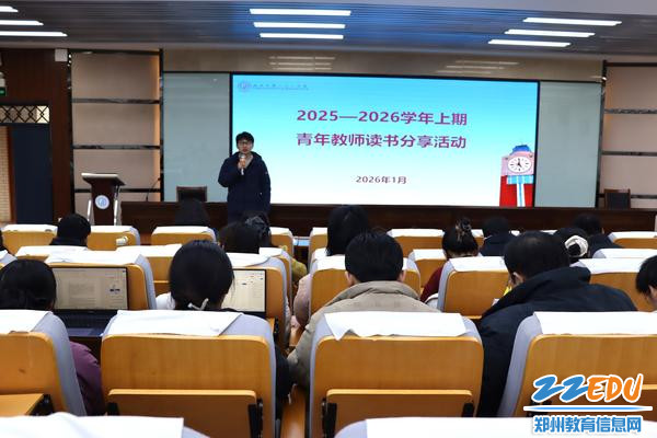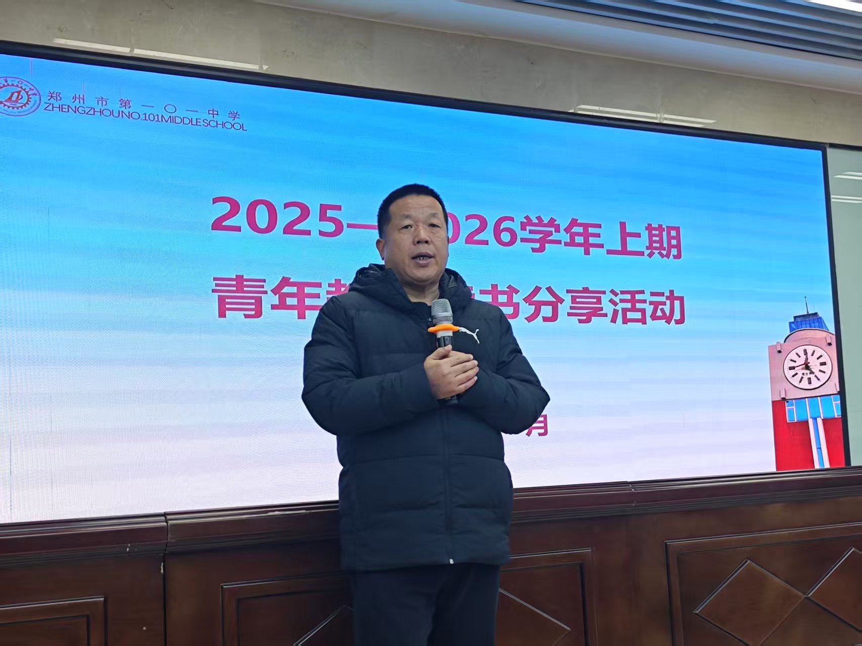 1月28日下午,郑州市第一〇一中学在图书馆一楼报告厅举办青年教师读书分享活动。本次活动旨在通过读书沙龙形式,搭建青年教师专业成长共同体,凝聚团队精神,推动校园文化建设,助力青年教师在教育的沃土中茁壮成长。郑州市第一〇一中学党委书记李国喜,副校长王国威,教师发展中心主任朱春英、副主任李文标,教科室主任李晓庆,学生发展中心副主任柏强,团委书记贾宇辉及35岁以下全体青年教师参与活动。