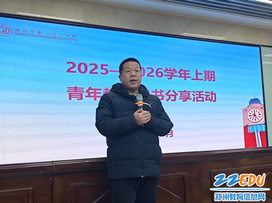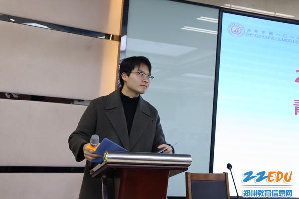 郑州市第一〇一中学教科室主任李晓庆讲解青年教师读书活动方案
