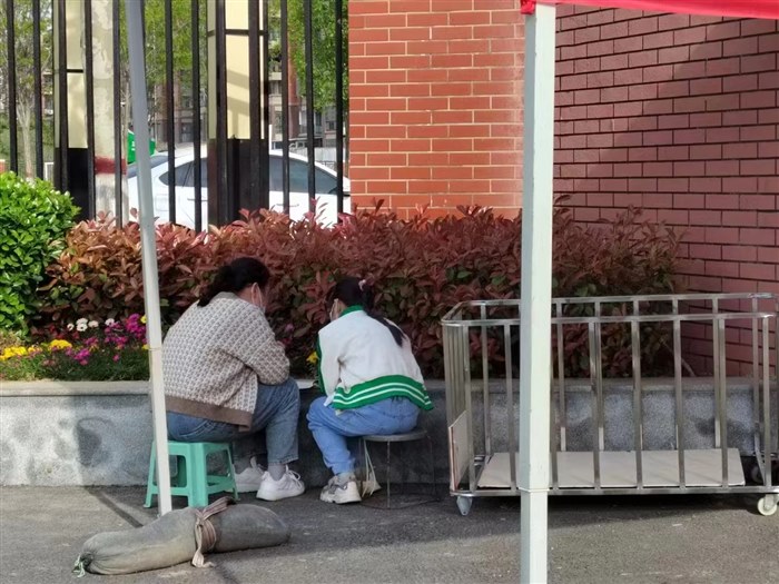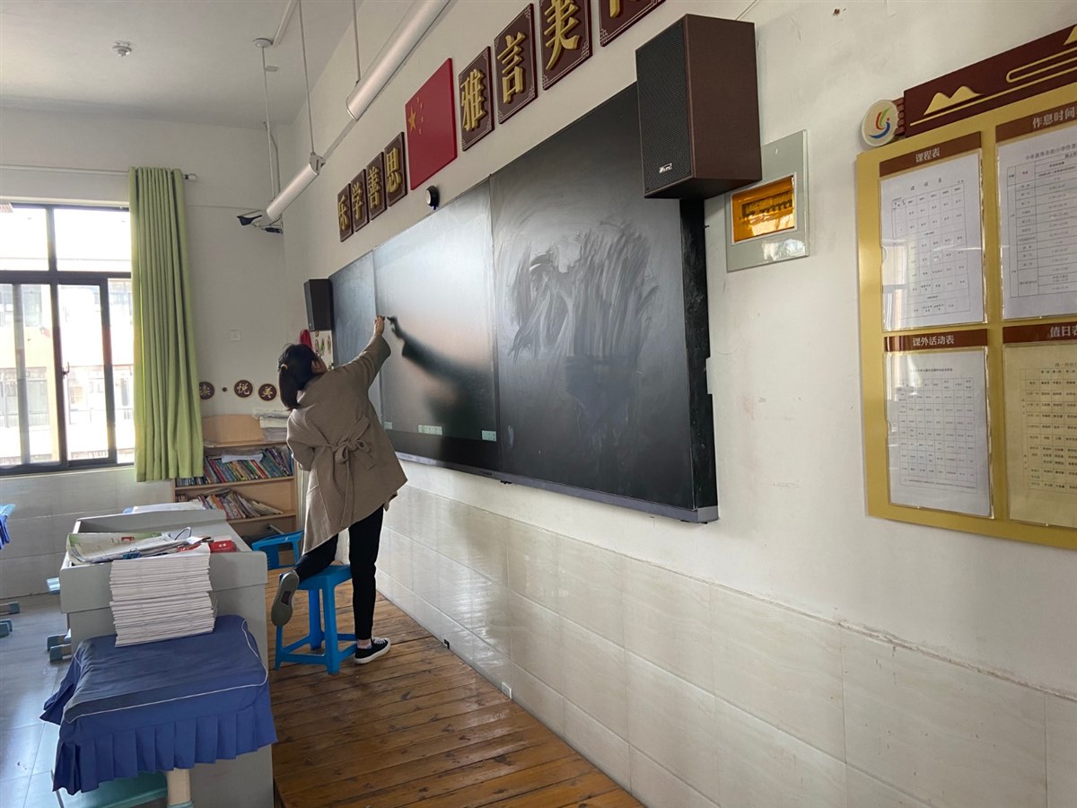 还有李倩老师在学校门口的花坛边给学生补课的那一幕,每每想起都让人温暖。原来有个学生请假了好几天,周末李倩老师值班,心里一直惦记着这位学生,就想抽时间给她补补课,又受到疫情影响,便索性拉着学生在校门口坐下了。其实,李倩老师的儿子刚满八个月,为了更好地投入到教学中,她把孩子全权交给了自己的婆婆,每天背着妈妈包给儿子屯口粮......“作为他们的英语老师,我实在不想让任何一个学生掉队。”李倩老师淳朴的言语间,流露出的正是那份爱与责任啊!这就是我们的寿圣之师,敬业,爱生如子的引路人!
